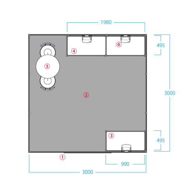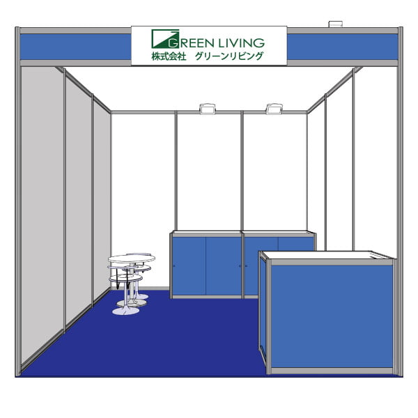 何を揃えたら良いのか分からない初出展のお客様や特別な装飾はいらないとお考えのお客様などが、ブースに必要な物がひと通り揃っているお手軽に用意が出来るのが最大の魅力となります!